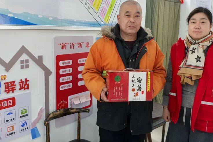 活动现场暖意融融、年味十足,各社区暖“新”驿站精心布置,处处洋溢着温馨喜庆的节日气息。双塔区委社会工作部工作人员与社区志愿者协同配合,将400箱蜜薯、130袋盘锦大米等年货物资整齐摆放,以热情周到的服务迎接前来休憩、领取慰问品的新就业形态劳动者。外卖骑手、快递员、环卫工人等群体在工作间隙陆续来到驿站,既享受了片刻的休憩时光,更收获了满载心意的节日慰问。驿站内配备的饮水机、充电设施、应急药箱、阅览角等便民服务设施,也为冬日里辛勤奔波的“城市奔跑者”搭建起暖心港湾,让他们切实感受到城市的温度。
